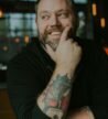 A building with a prominent red and white sign labeled 'SERVICE' against a bright blue sky with some clouds. The structure has a modern, industrial appearance with sleek lines and a clean design. A light fixture is visible on the wall.